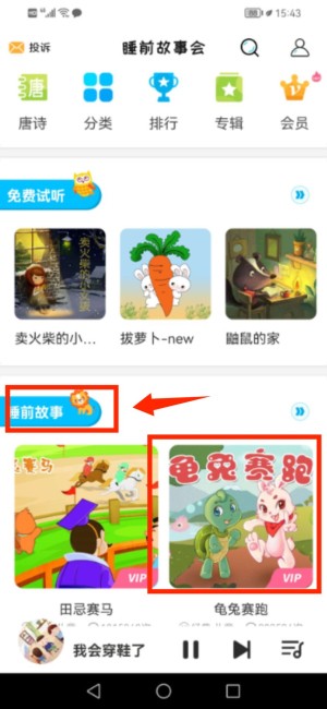 3.选择故事:在App主界面找到“睡前故事”板块,点击进入后选择“龟兔赛跑”故事。