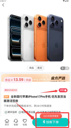 4、选定目标商品后,点击领券下单即可完成租赁。