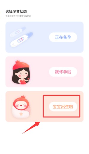 进入状态选择界面,点击“宝宝出生啦”选项,进入信息填写页面。