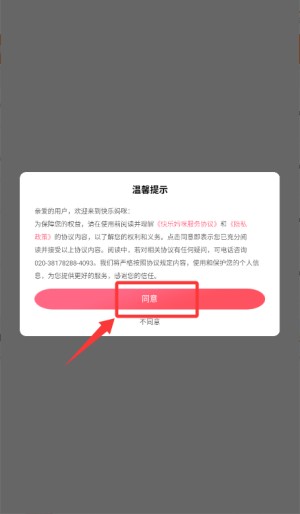 首次打开快乐妈咪App,在弹出的温馨提示窗口点击“同意”,进入主界面。