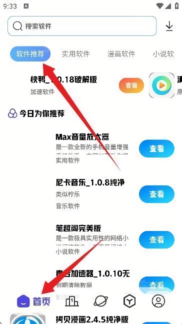 5、然后在首页中我们就能看到大量的实用软件推荐,