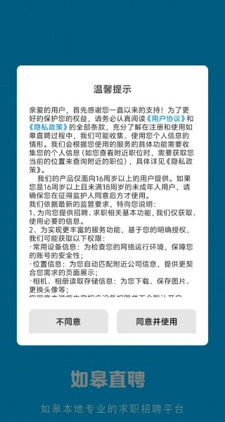 1.下载安装:在本站中搜索“如皋直聘”,下载并安装App,启动时点击同意隐私提示。