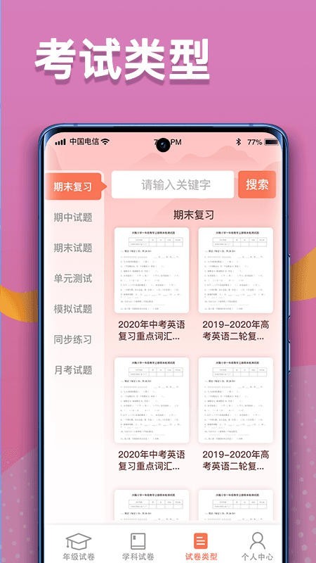 3、不同年级的试卷都可以找到,通过平台可以高效学习。