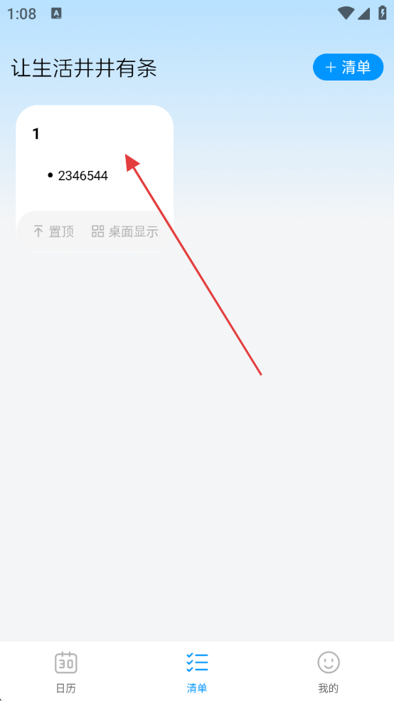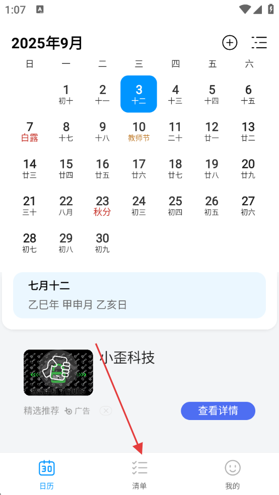 1、打开桌面极简日历,进入日历页面,可查看包括节气、农历等信息,若要创建清单,点击底部【清单】。