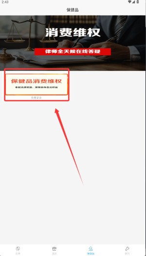 2.查看维权指引:进入维权专题页(如原“保健品消费维权”示例页),点击「查看更多」获取详细流程说明。