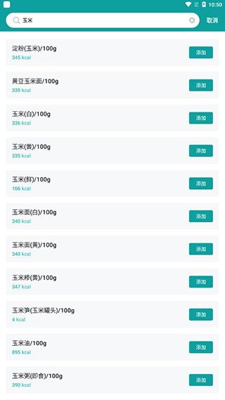 若列表中有已摄入的食物,直接点击添加;