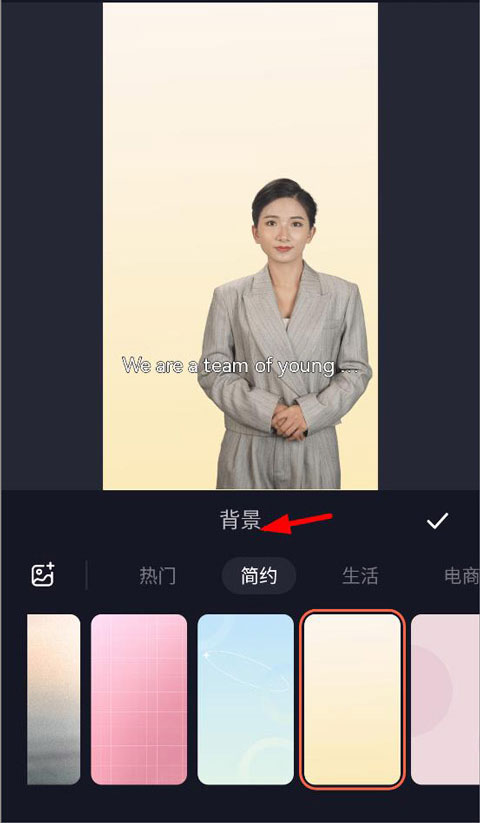 3、进入创作模式后,用户看设置视频模板、背景、数字人、配音、文字等,点击选择数字人。