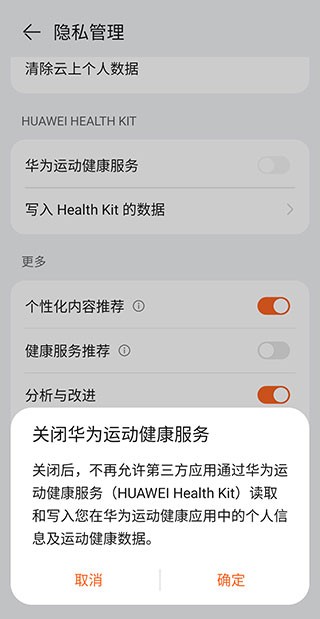3、在弹出来的二次确认窗口中,点击【确定】,即可关闭华为运动健康服务。