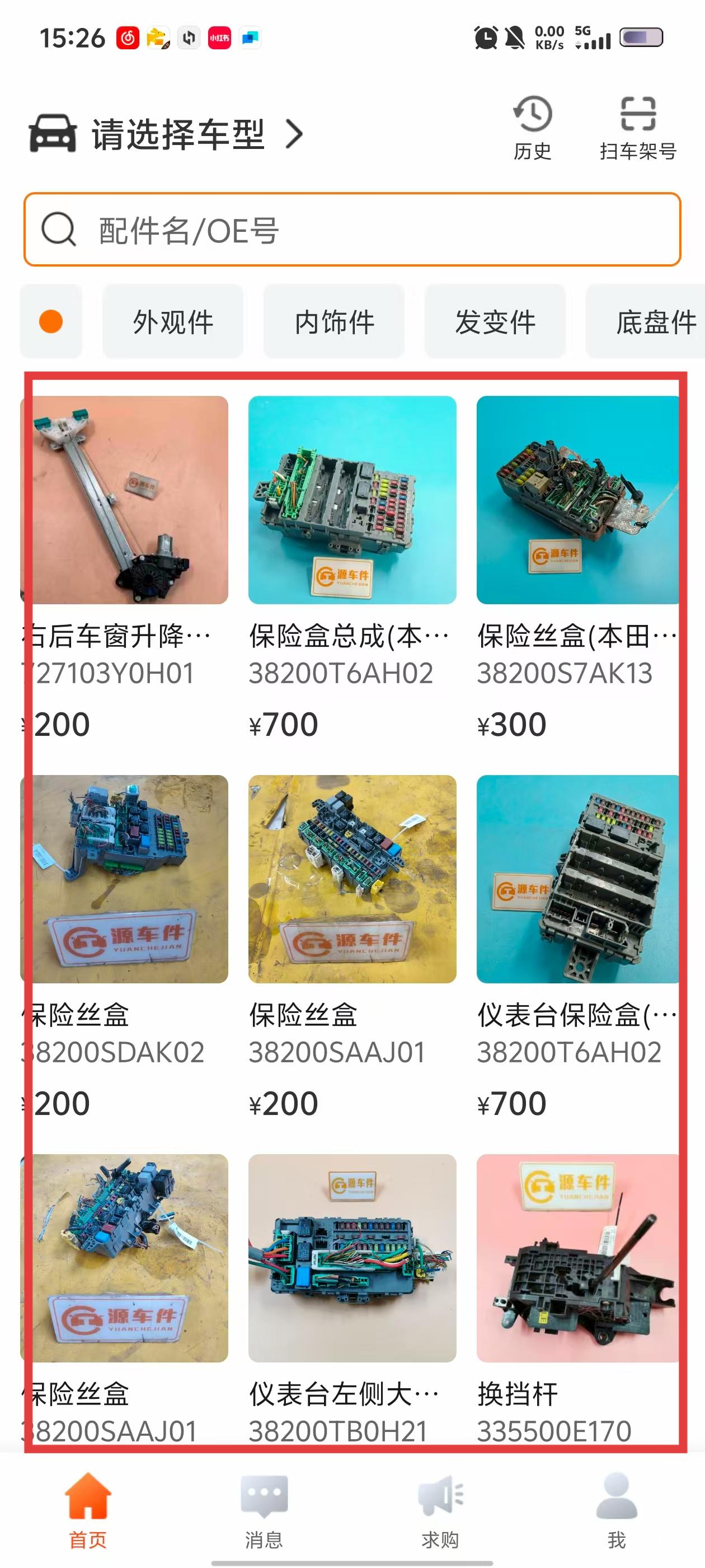 2、在首页选车型、搜配件,浏览外观件等分类里的商品。