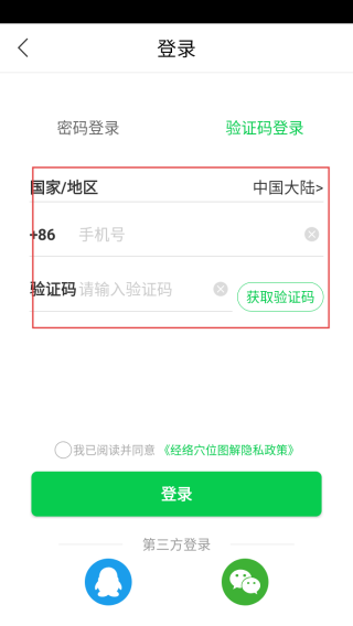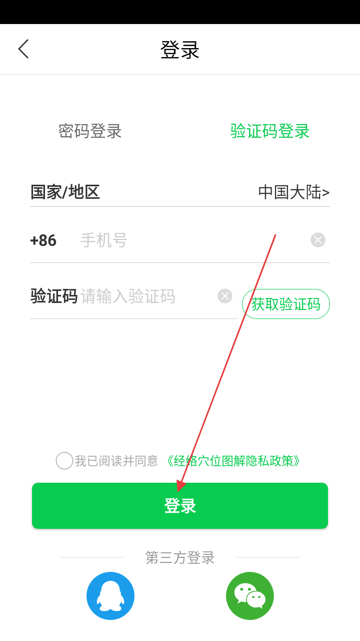 2、进入登录界面输入手机号和验证码。