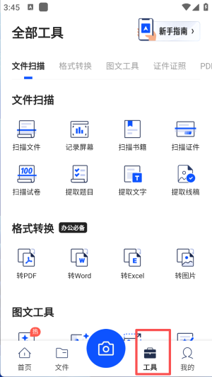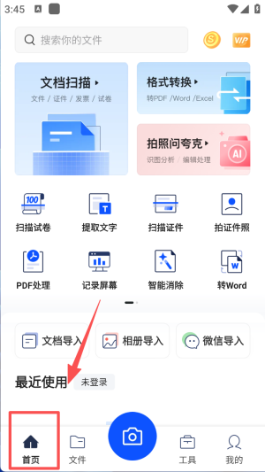 1、点击首页按钮,访问文档扫描和格式转换等功能。