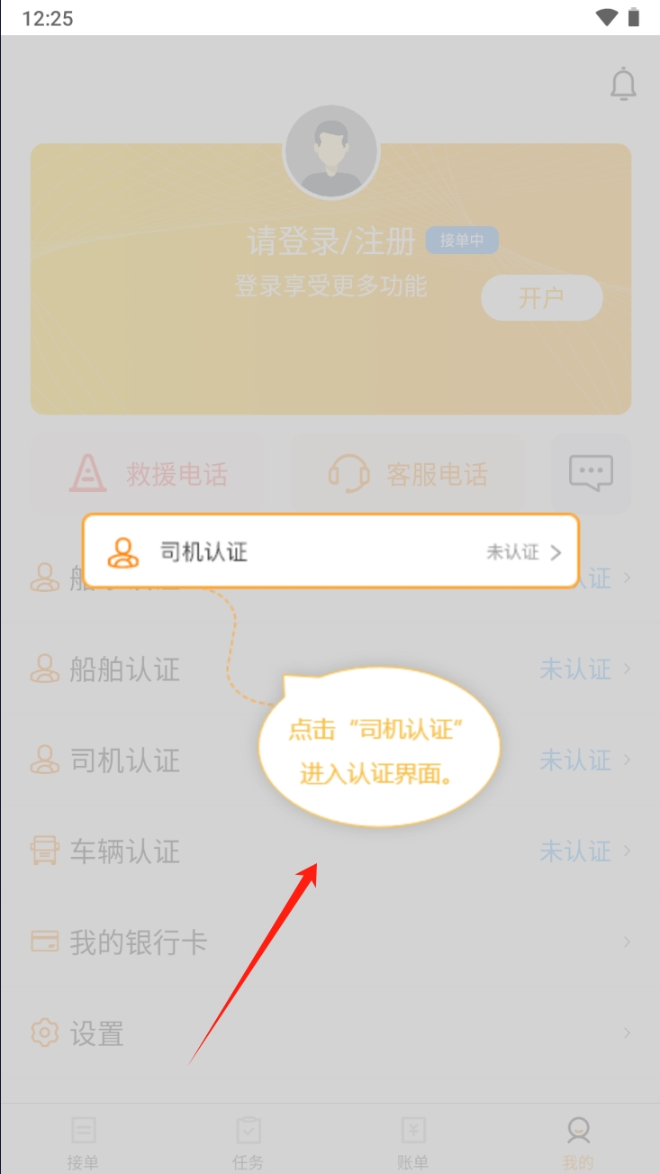 3、完成司机认证:登录后点击“司机认证”进入认证界面,完成认证以享受更多功能。