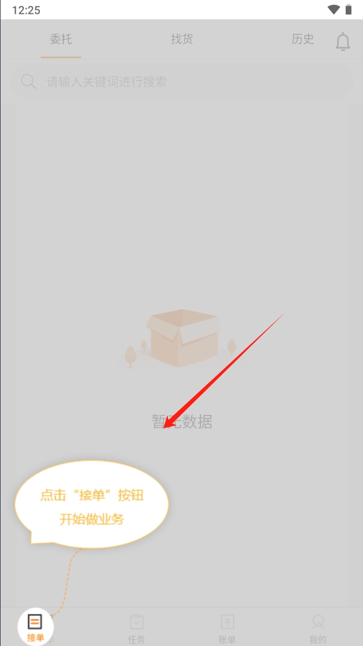 1、点击接单按钮:在应用首页点击“接单”按钮,开始接取物流任务。