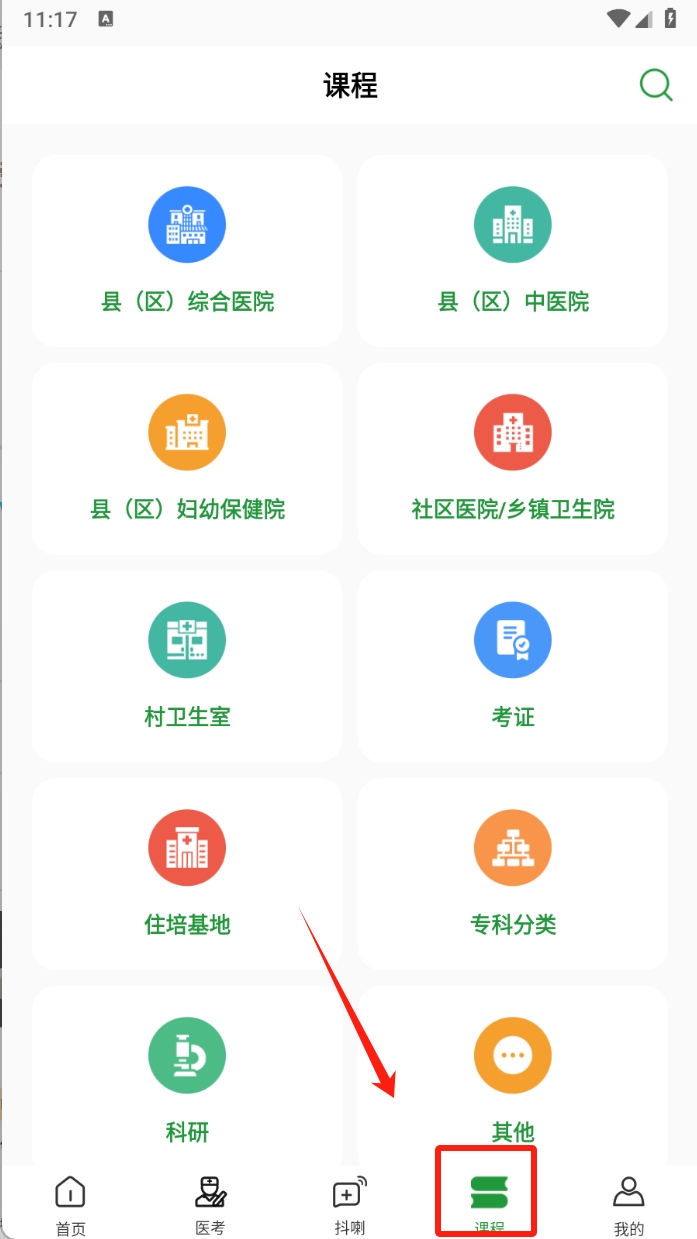 2、第二步:在课程页面,点击底部导航栏的“课程”图标,浏览各类医学课程。选择适合你的课程进行学习。