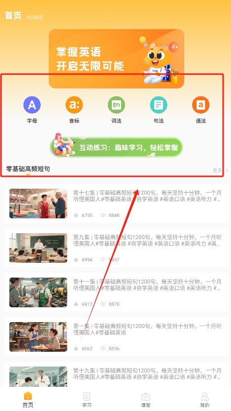 1、首先下载安装音标学习软件,注册账号后,便可进入丰富的学习界面,浏览各类音标及词汇课程。