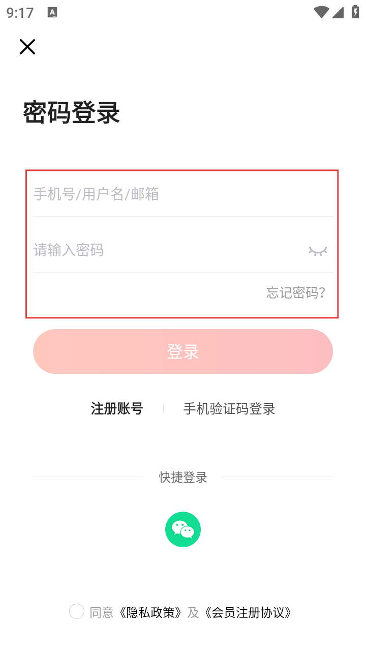 3、选择密码登录方式,在对应输入框填入【手机号/用户名/邮箱】和密码,也可通过其他登录方式操作。