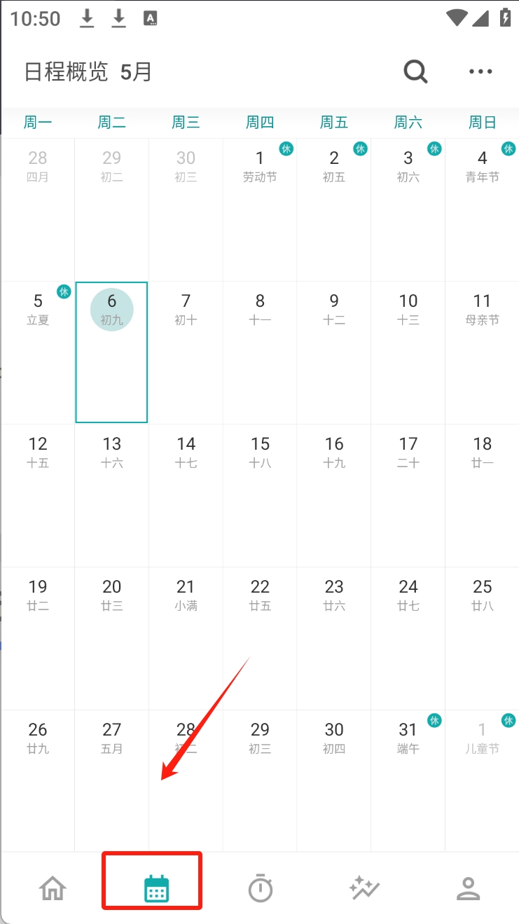 2、点击“日历”图标查看详细日程安排。