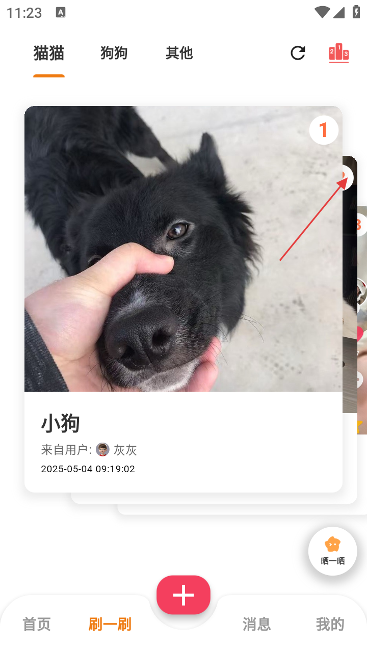 2、在【刷一刷】页,左右滑动浏览萌宠内容。