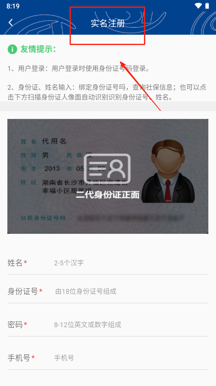 2、选择注册:点击“立即注册”按钮,进入实名注册页面,填写个人信息。