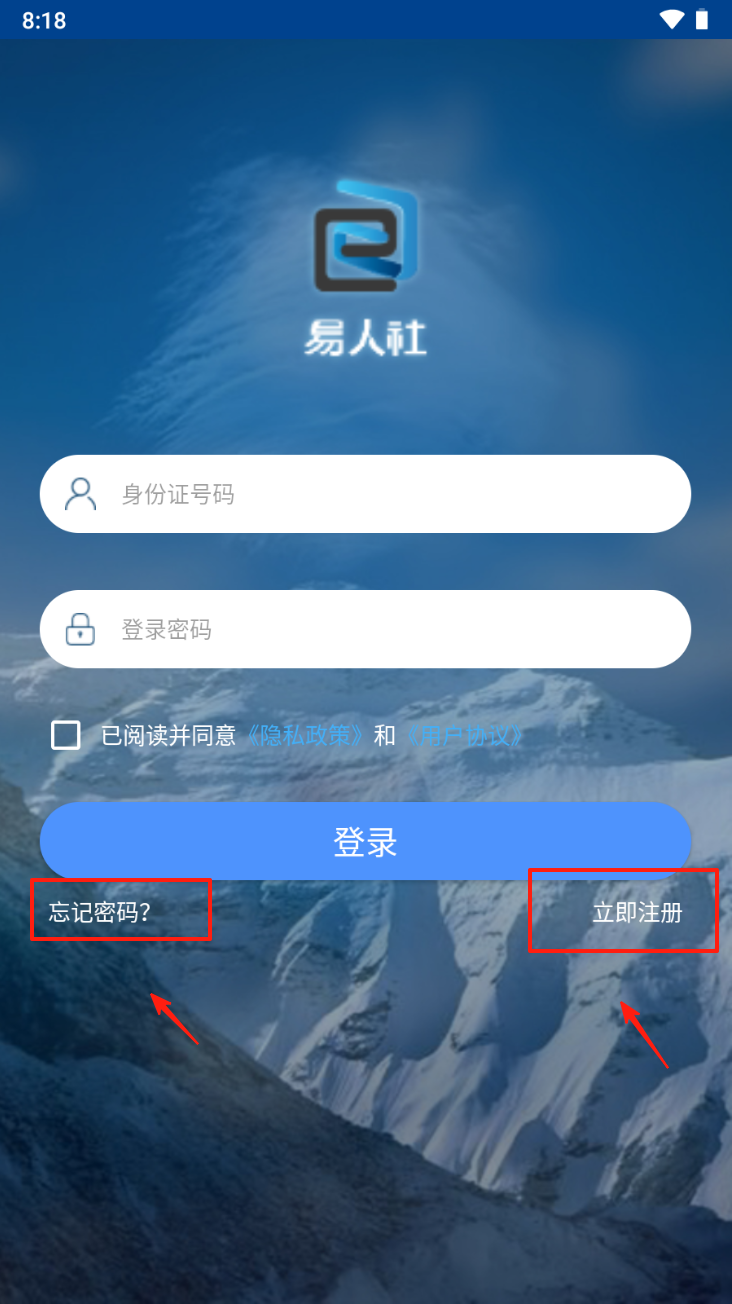 1、进入登录页面:点击“易人社”图标,进入登录界面,准备输入身份信息。