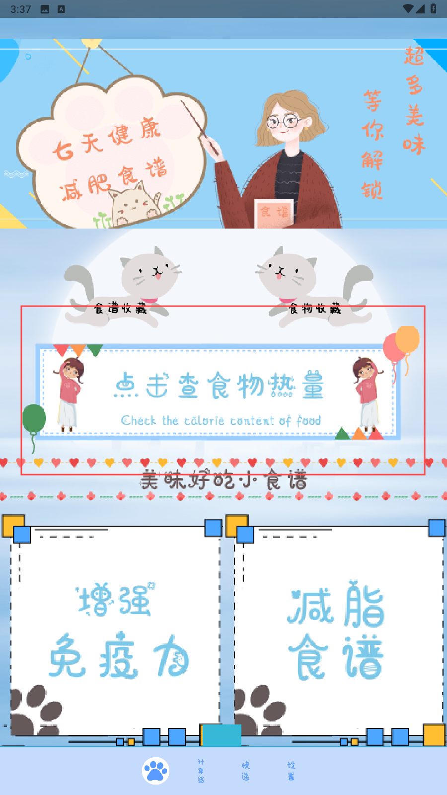 1、打开应用,点击【点击查询食物热量】。