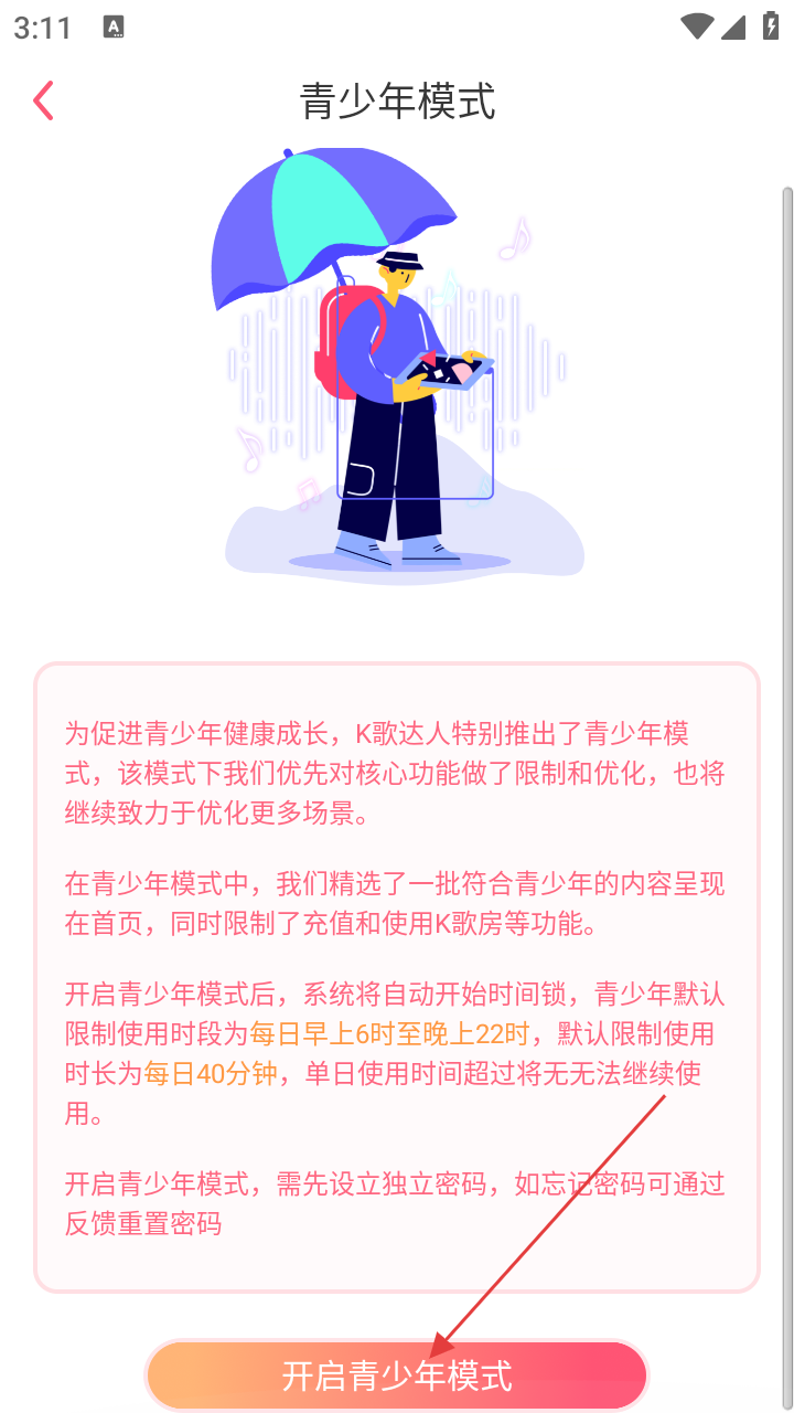 k歌达人怎么开启青少年模式