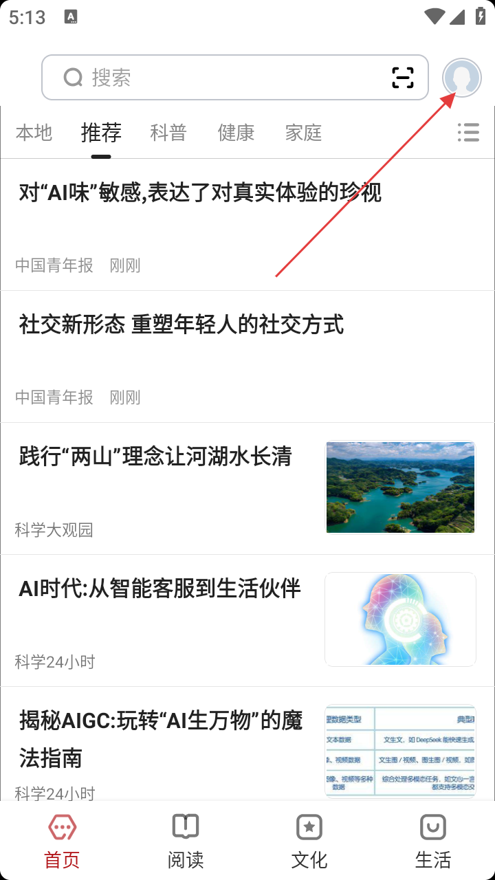 1、打开数字通辽APP,进入首页后,点击页面右上角的头像图标,进入个人相关页面。