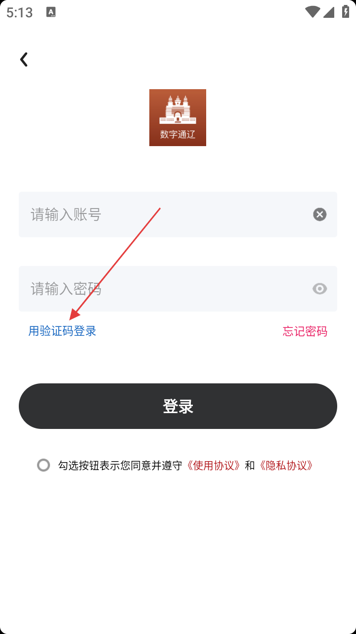 3、在登录页面,若选择用验证码登录,点击【用验证码登录】选项。