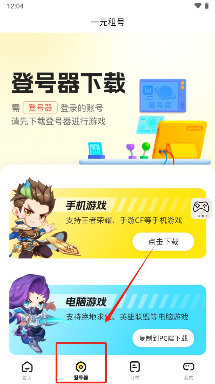 2、在首页,点击底部导航栏中的“登录器”图标,下载并安装登录器应用。
