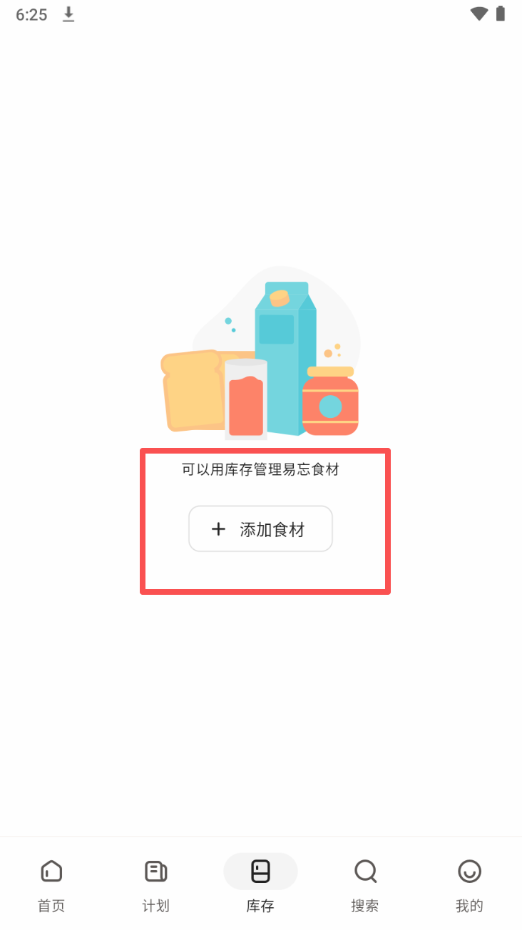 2、添加食材:点击“添加食材”按钮,将所需食材加入库存管理。