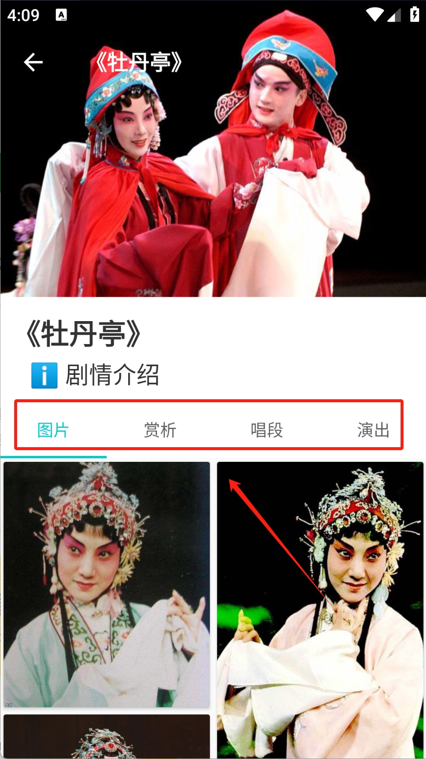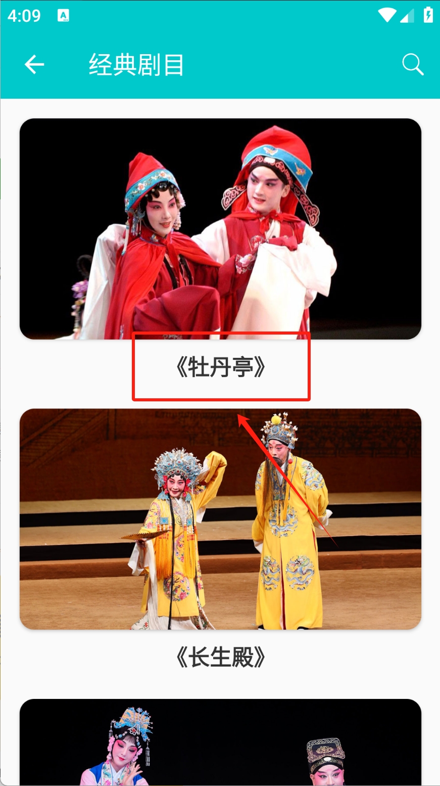 2、选择牡丹亭或长生殿等剧目查看详情。