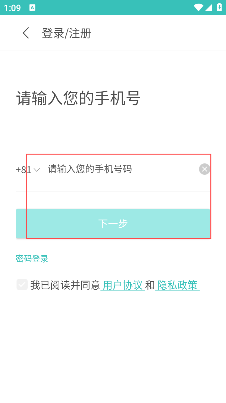 4、在登录/注册页,填手机号,勾选协议,点【下一步】完成登录/注册,开启沟通。