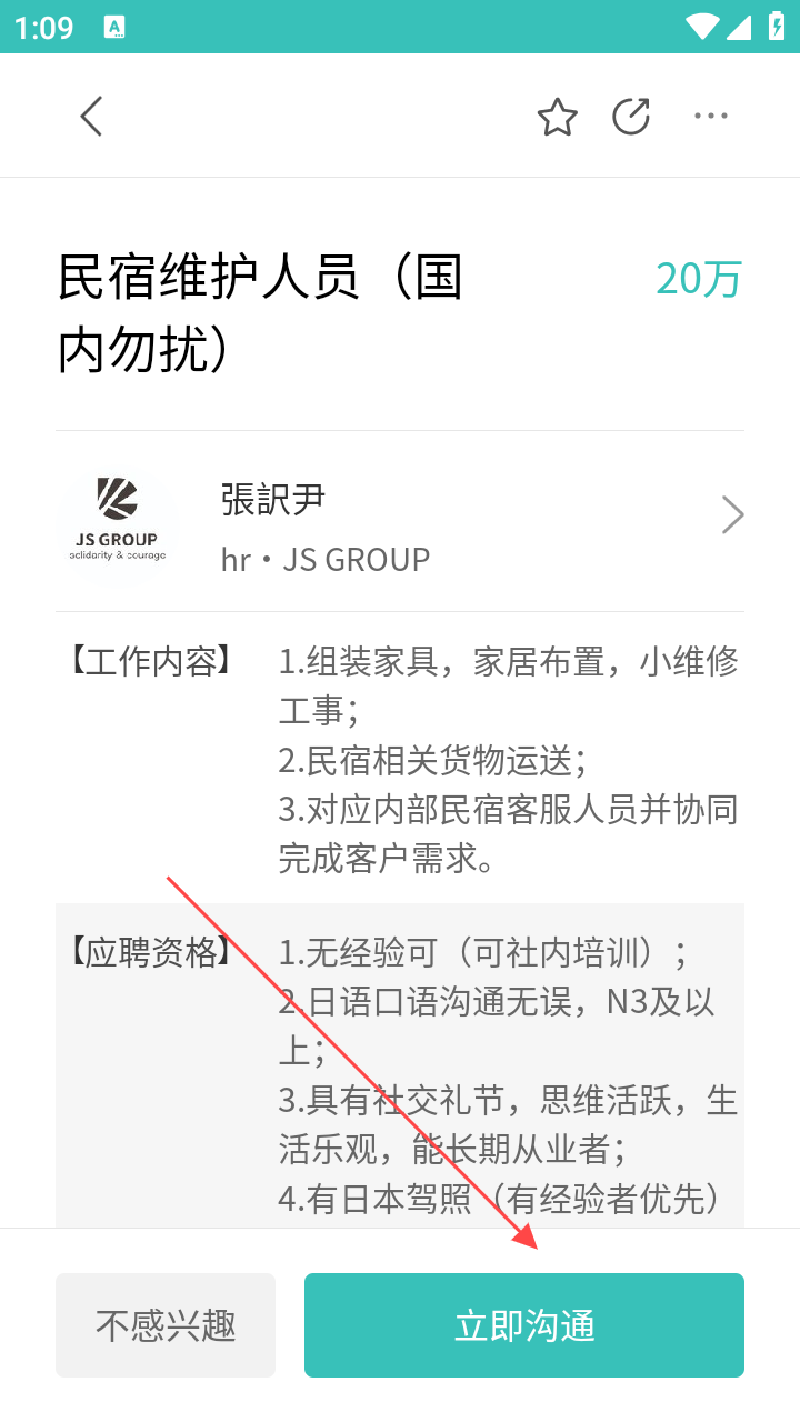 3、对岗位有意向,点【立即沟通】,进入登录/注册环节,准备联系招聘方。