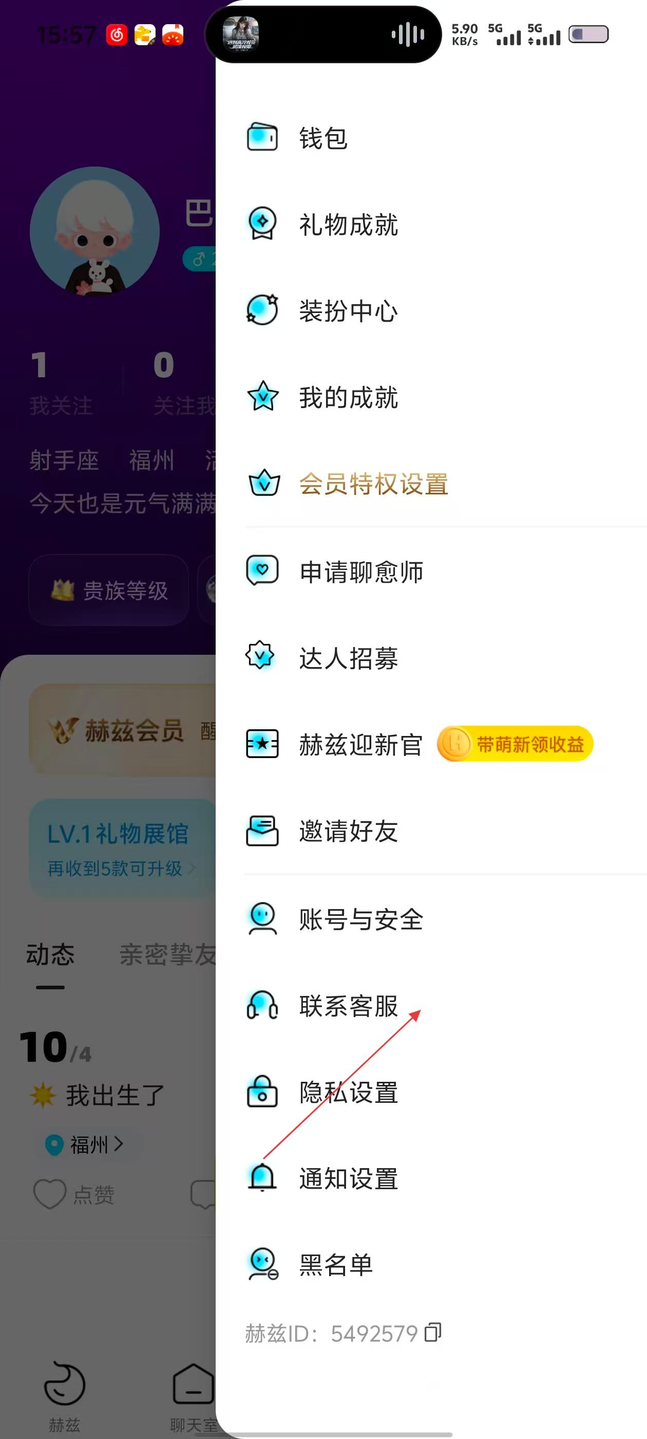 3、在展开的功能菜单中,找到【联系客服】选项并点击,进入我的客服页面。