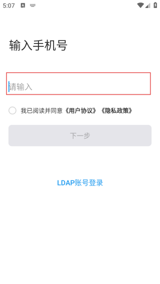 2、在手机号输入页,于【请输入】框填入手机号码,勾选协议授权。