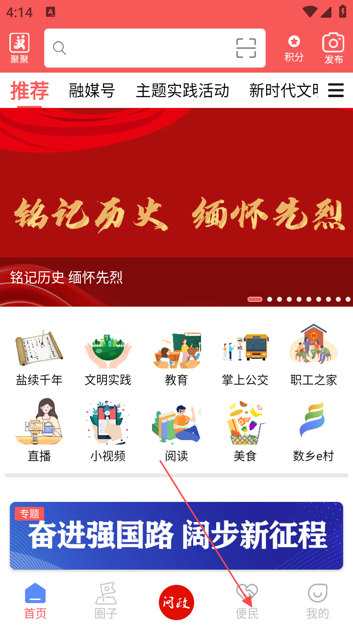1、打开应用进入首页,点底部【便民】,进入便民服务页。