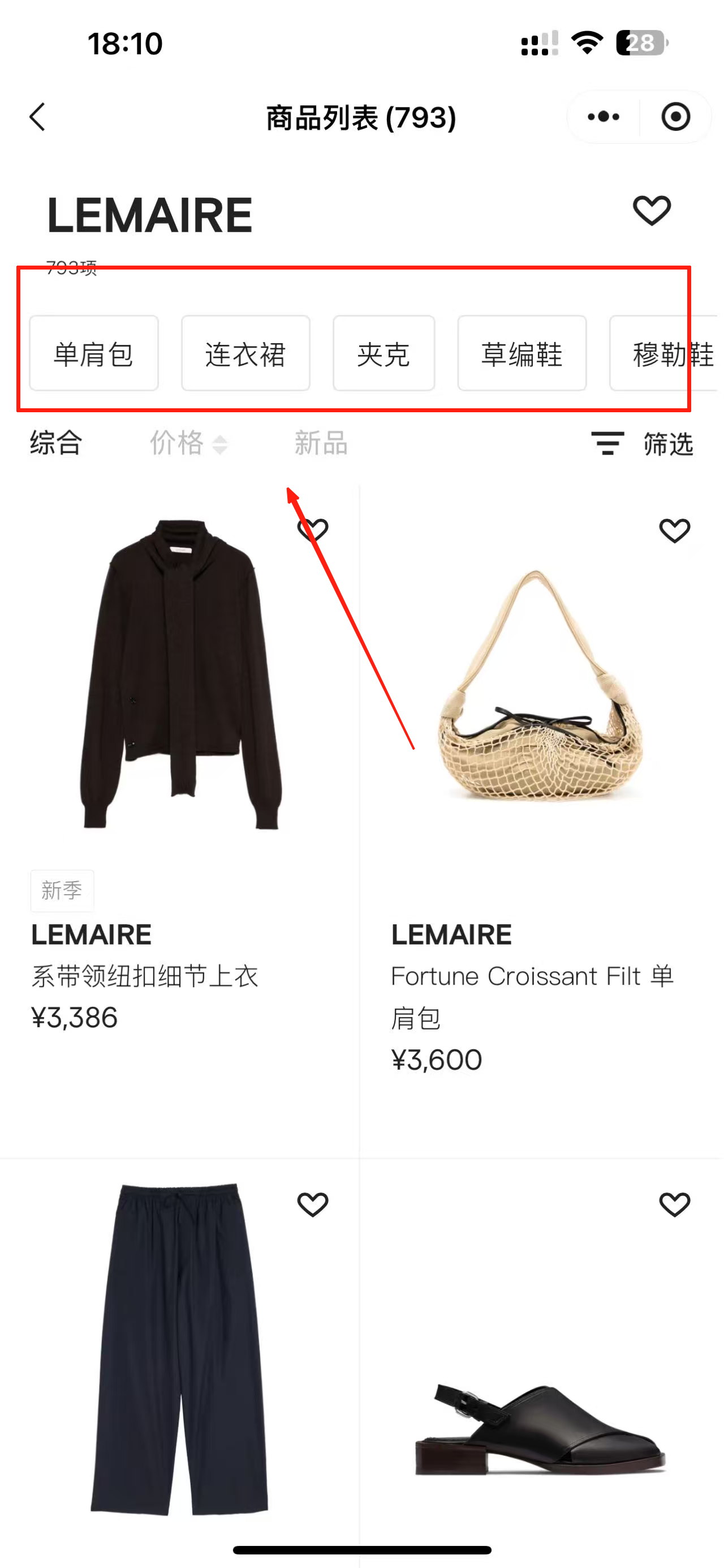 2、在分类页面选择商品类别,浏览并挑选感兴趣的商品。