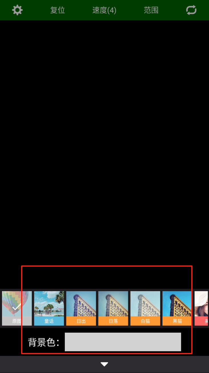 4、设置背景色。选择背景色并应用到拍摄或录像中。