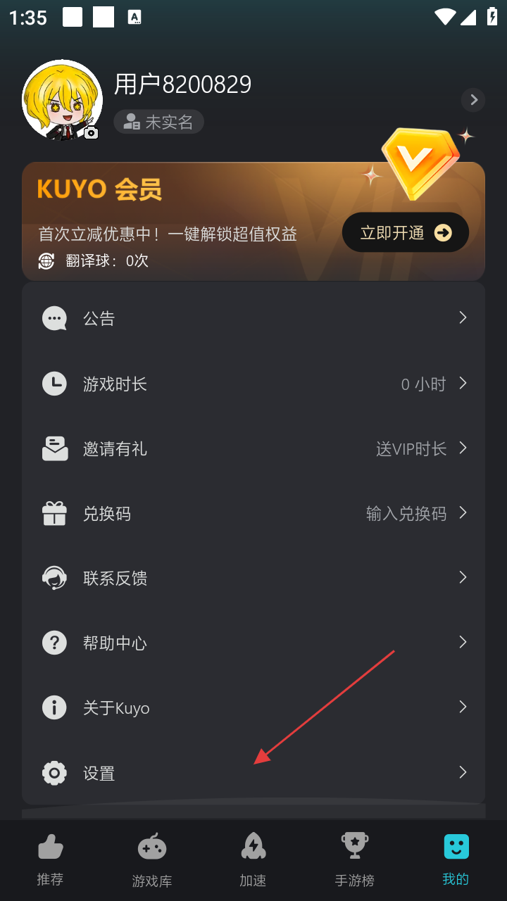 1、在kuyo加速器界面,点击右下角【我的】图标,进入个人页面。