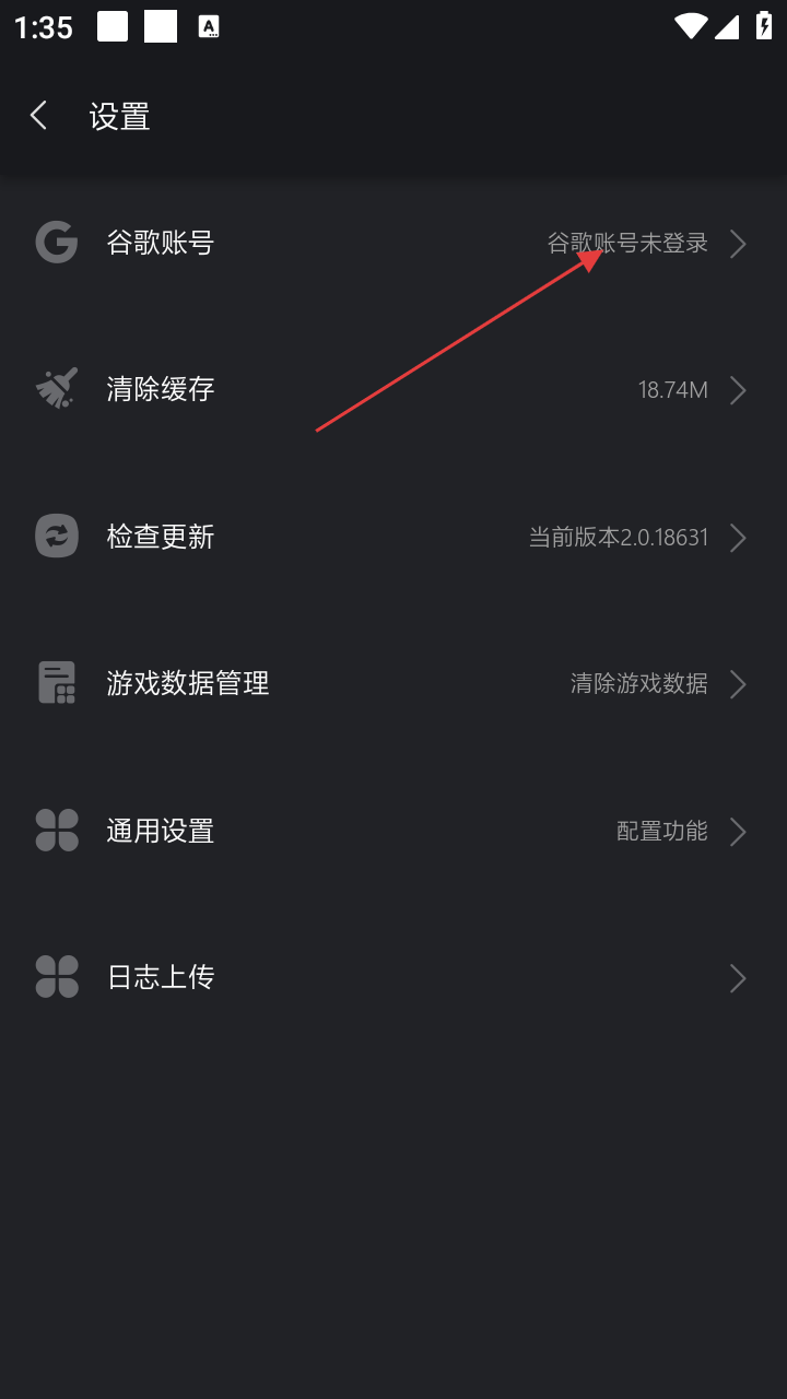 3、在设置页面,点击【谷歌账号】选项,进入谷歌账号相关页面。