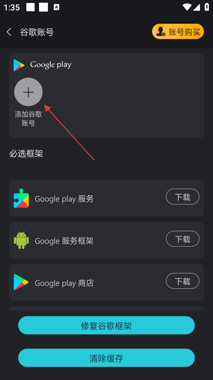 4、在谷歌账号页面,点击【添加谷歌账号】按钮,可进行谷歌账号添加操作。