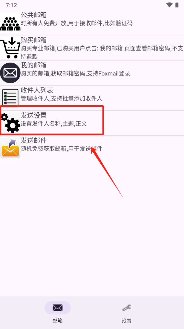 1、点击“发送设置”选项。设置发件人名称、主题和正文。