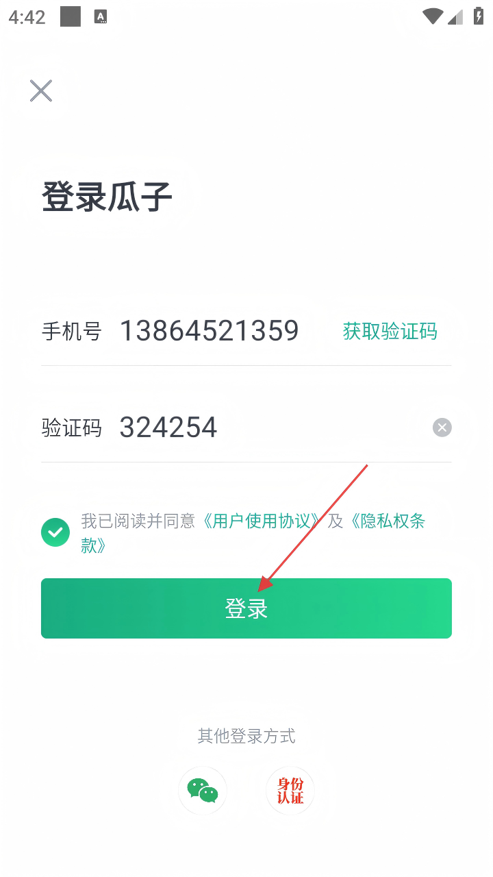 4、将收到的验证码输入后,勾选【我已阅读并同意《用户使用协议》及《隐私权条款》】,最后点击【登录】,即可完成登录操作。