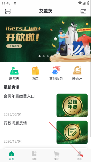 1、打开应用进入首页点击我的。