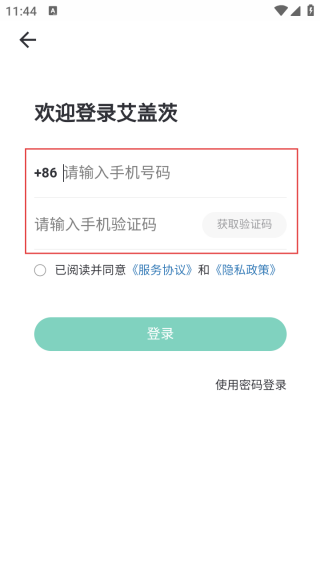 3、进入登录界面输入手机号和验证码即可登录。