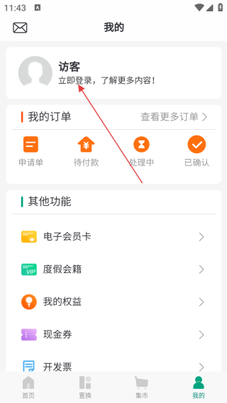 2、进入我的界面点击登录。