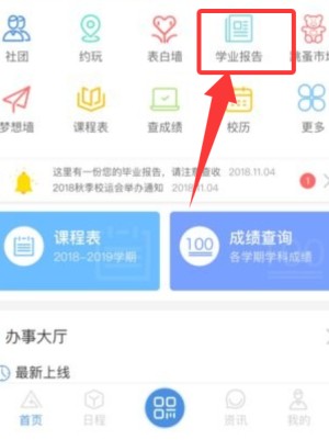 下载并登录App后,进入首页点击「课表查询」,可查看本周或全学期的课程安排。