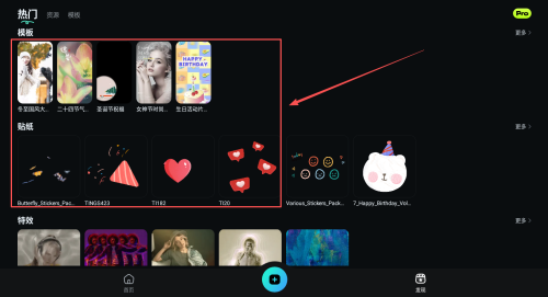 3. 创意素材:提供大量特效、音乐和模板资源。