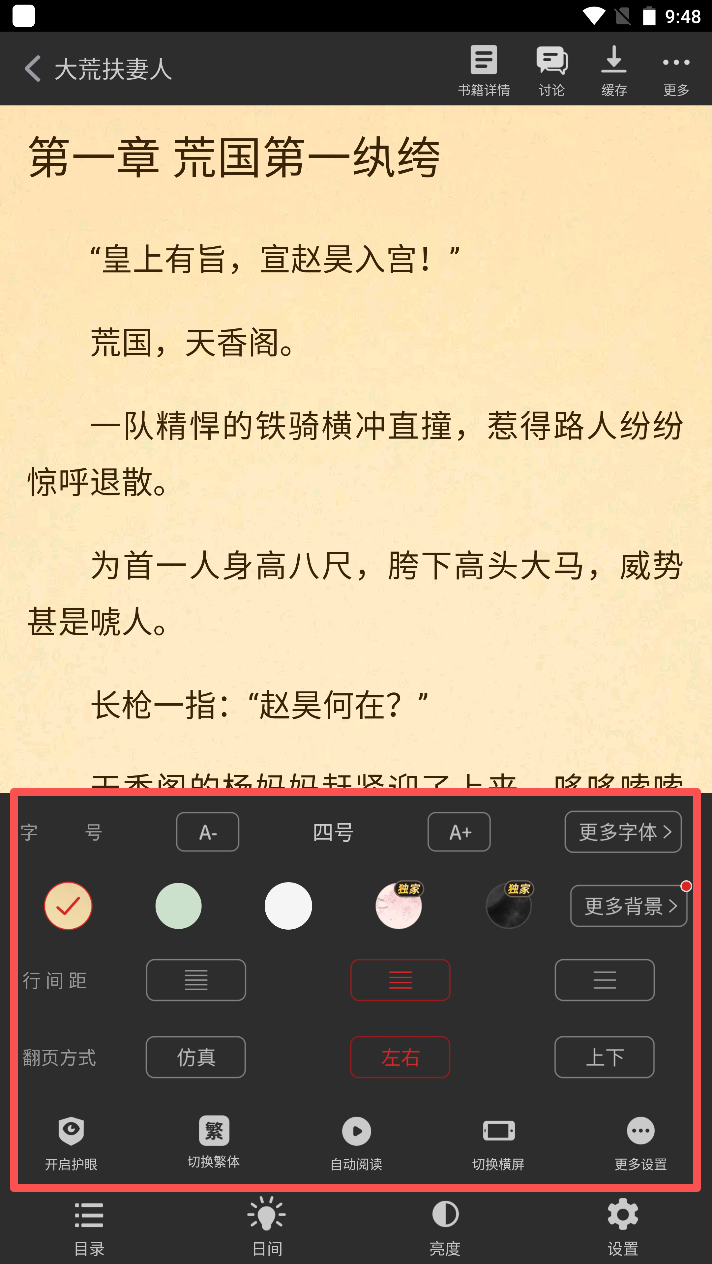3、在阅读界面点击屏幕调出菜单,调整字体大小、背景色调或开启夜间模式,适配阅读环境。
