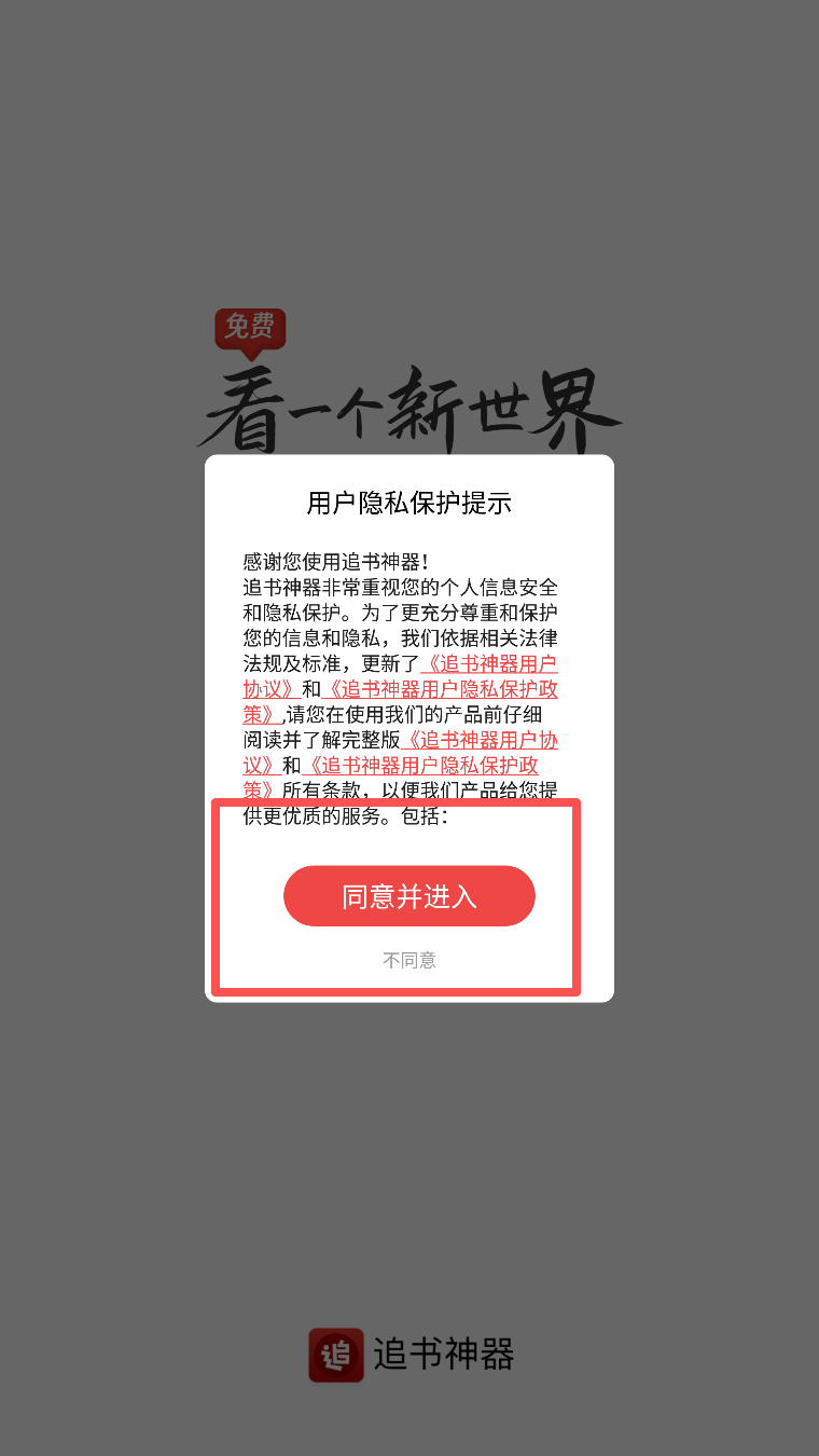 1、阅读并同意用户隐私保护提示,点击“同意并进入”。